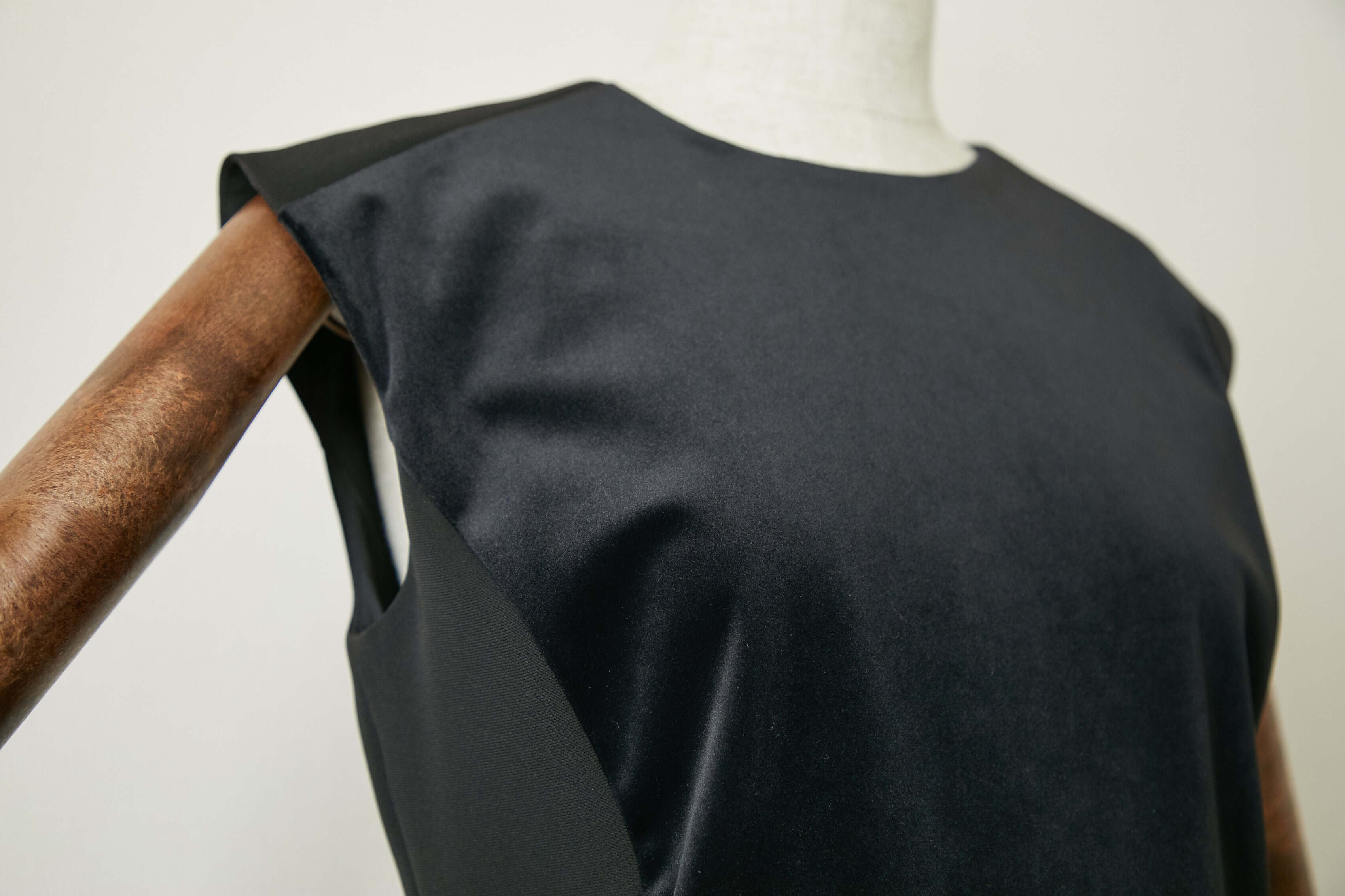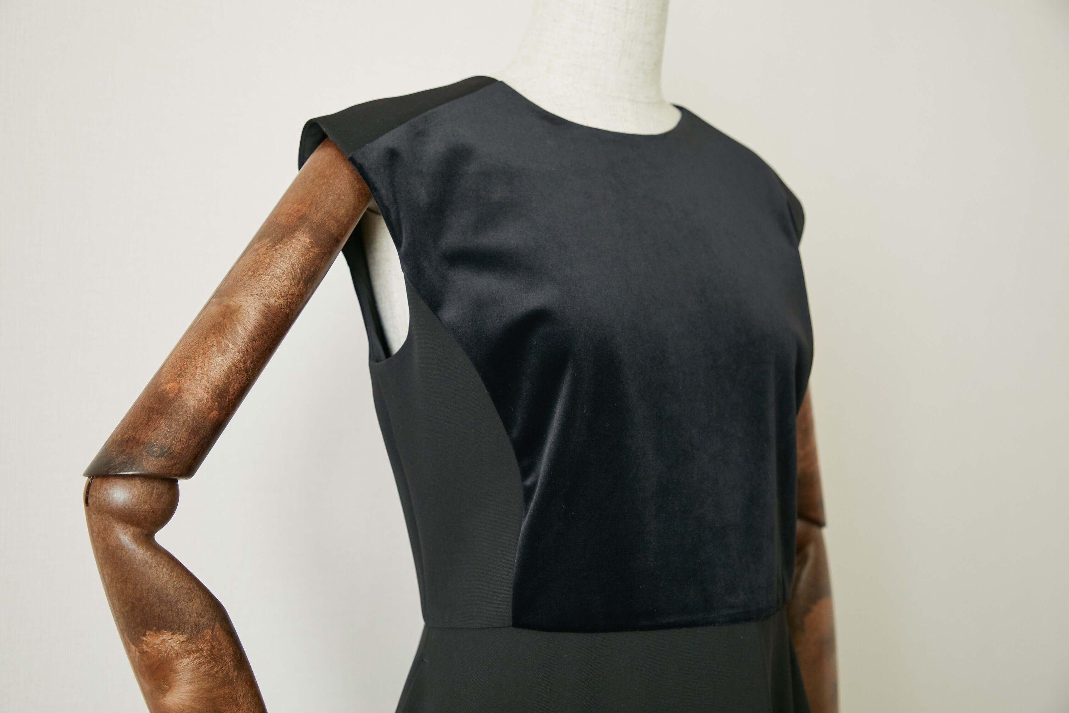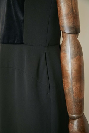 前身ごろに肌触りの良いベロアを施し、ドレッシーさを。