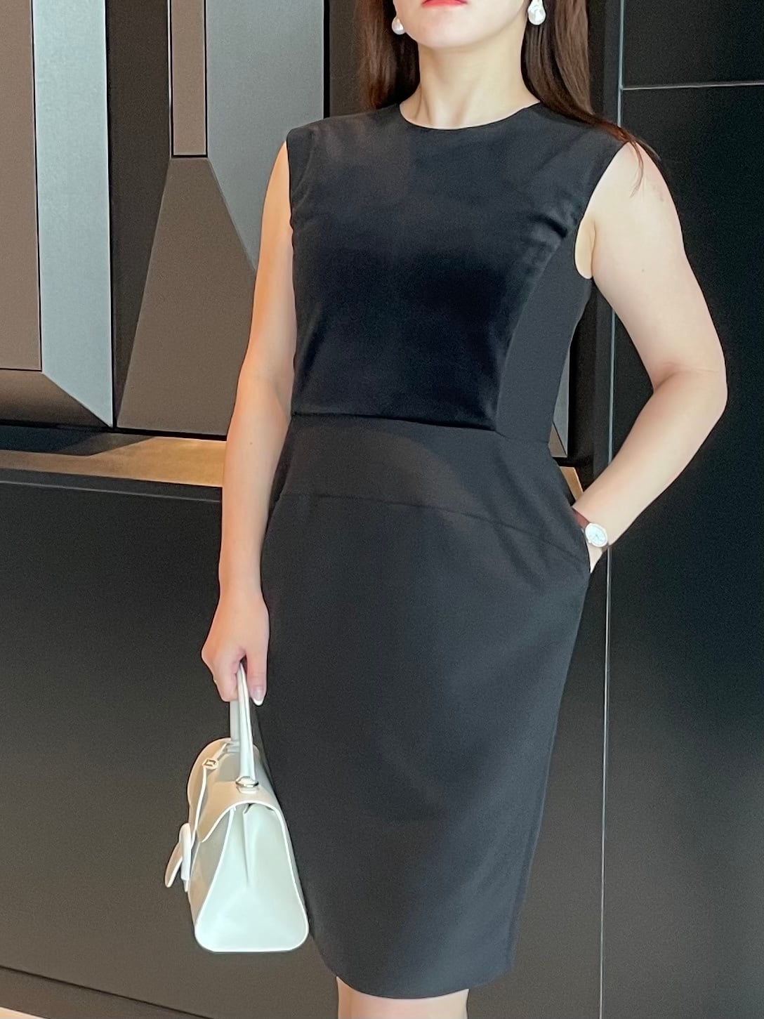 スカート部分は、程よいコクーンシルエットで下半身を綺麗にカバー。