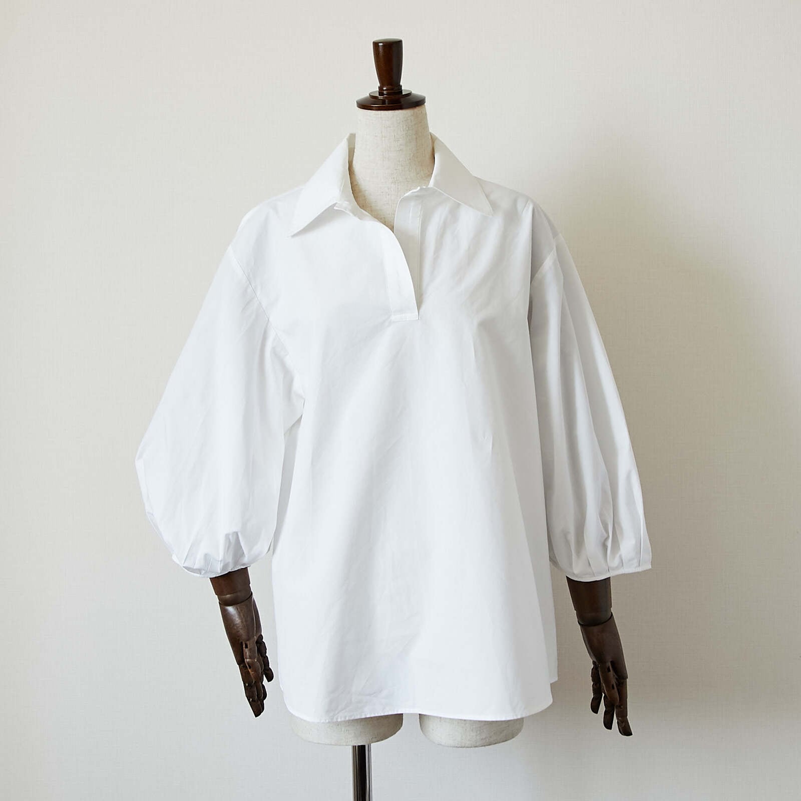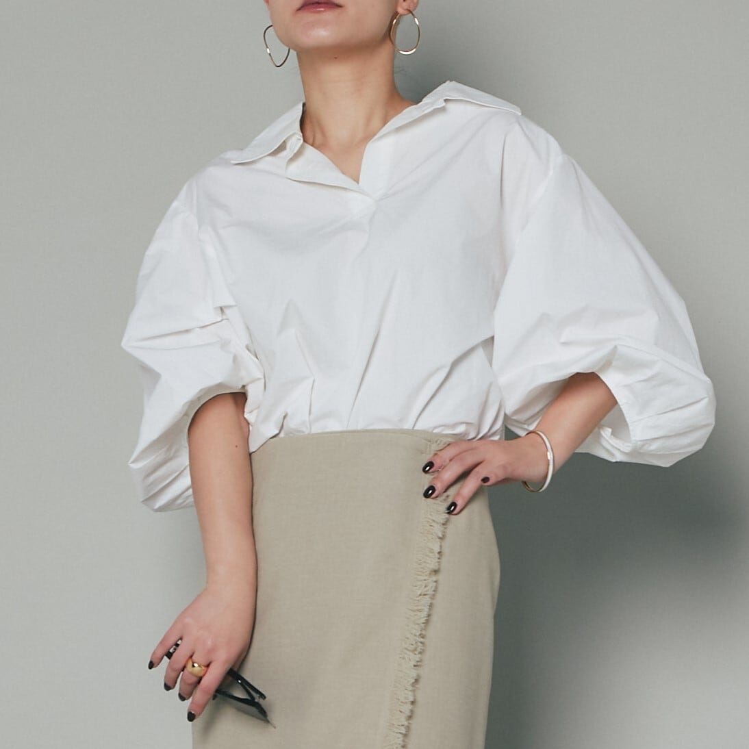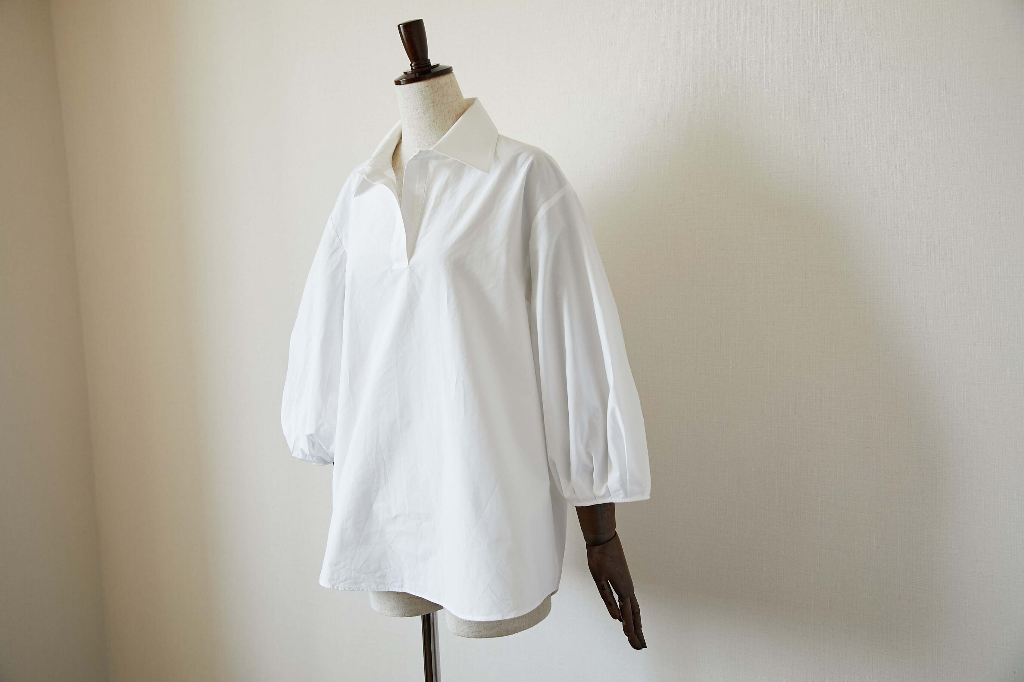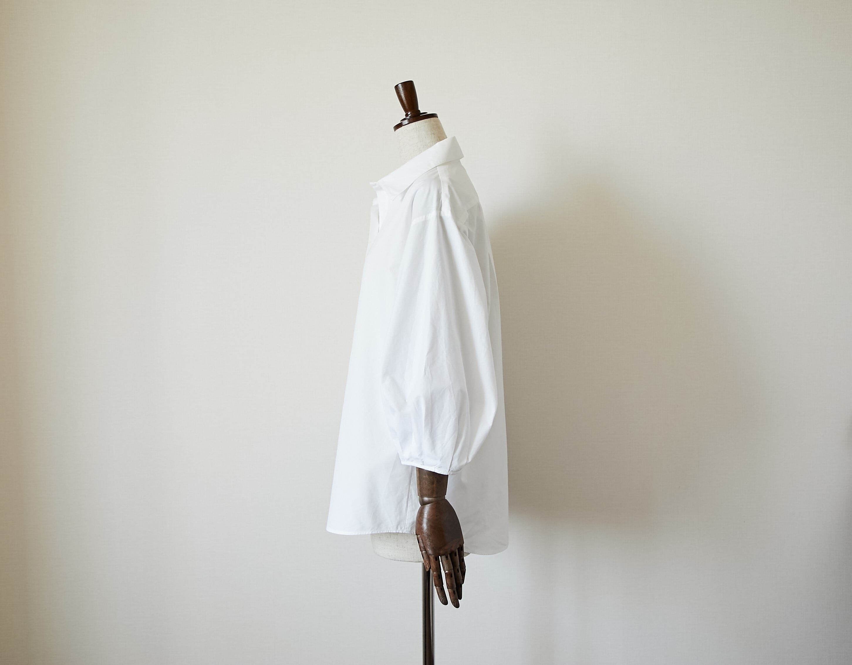 絶妙なボリュームの袖口から覗く手首はもちろん華奢に見え、ジュエリーで着飾っても素敵です。またワンサイズですので、多くの方にお召頂けるボトムスを選ばないシャツとなります。