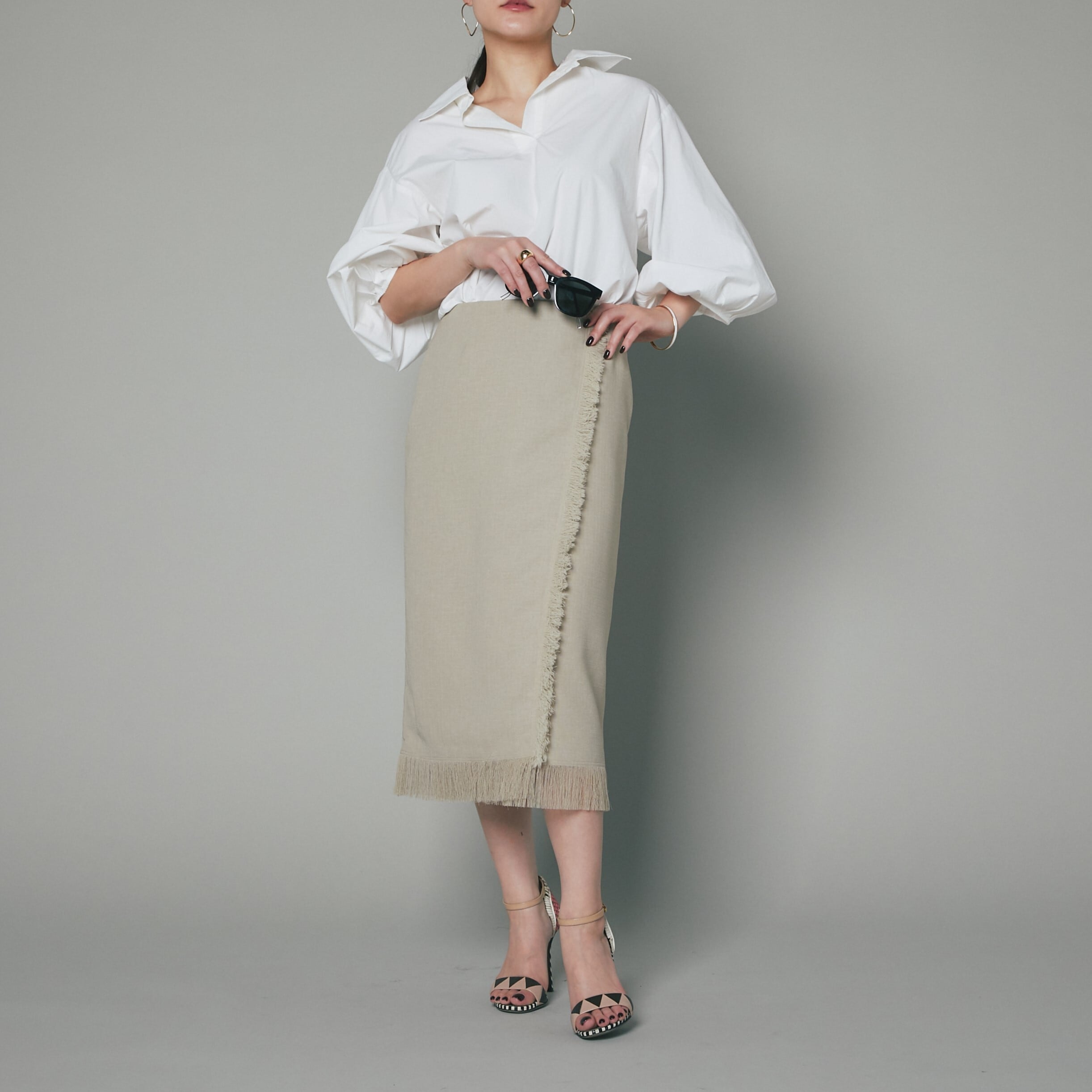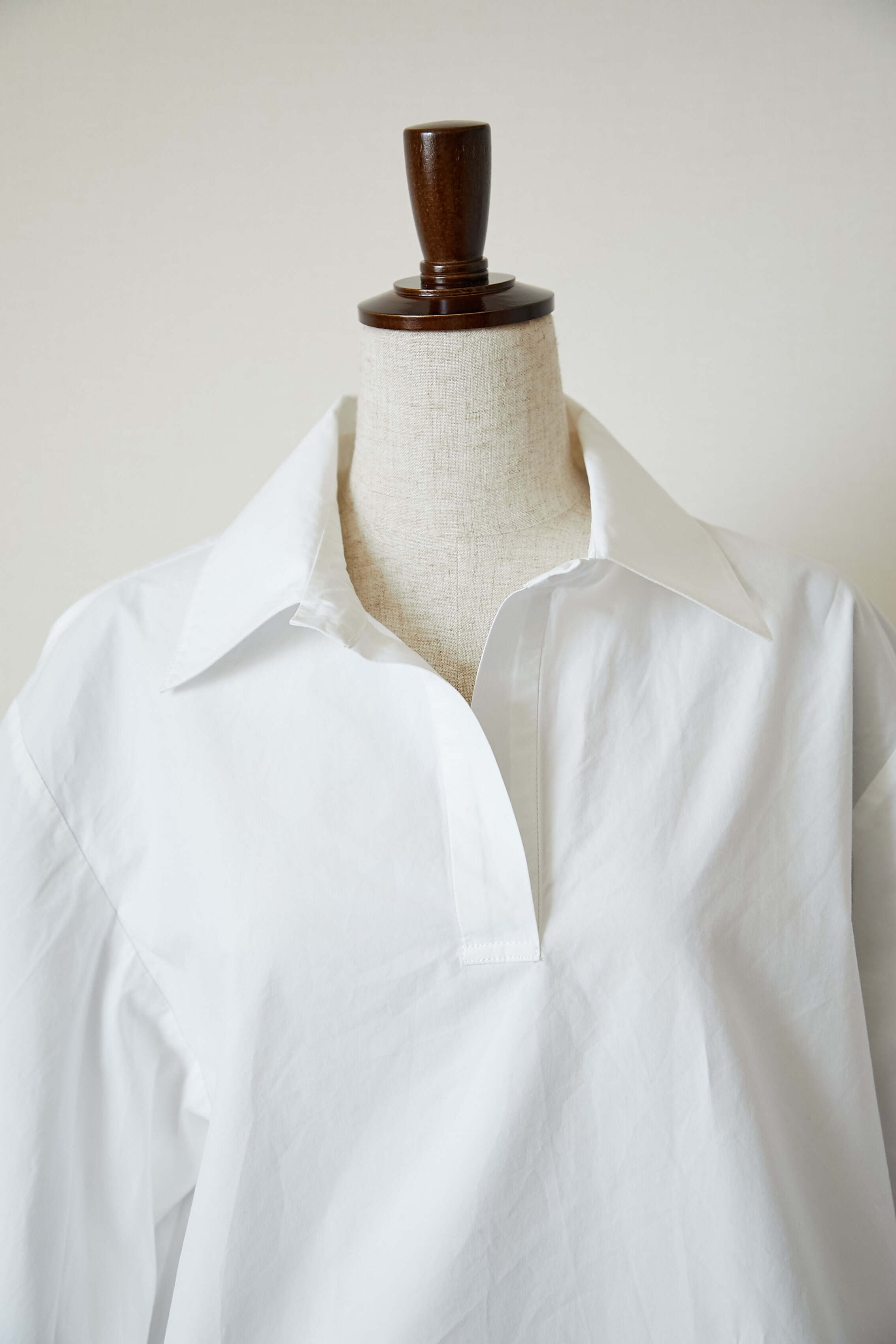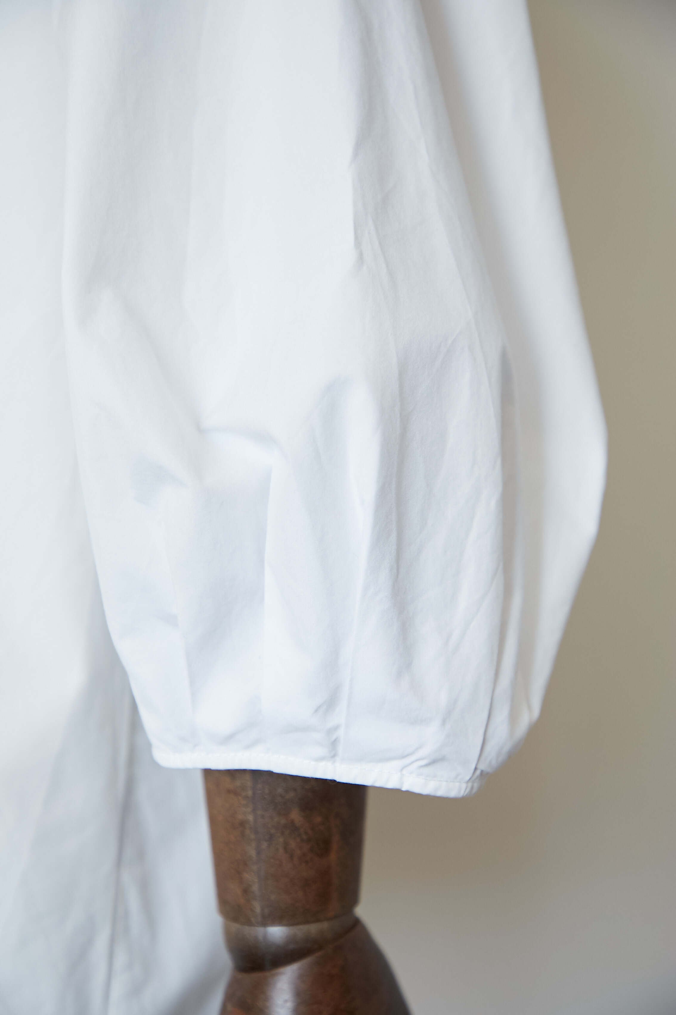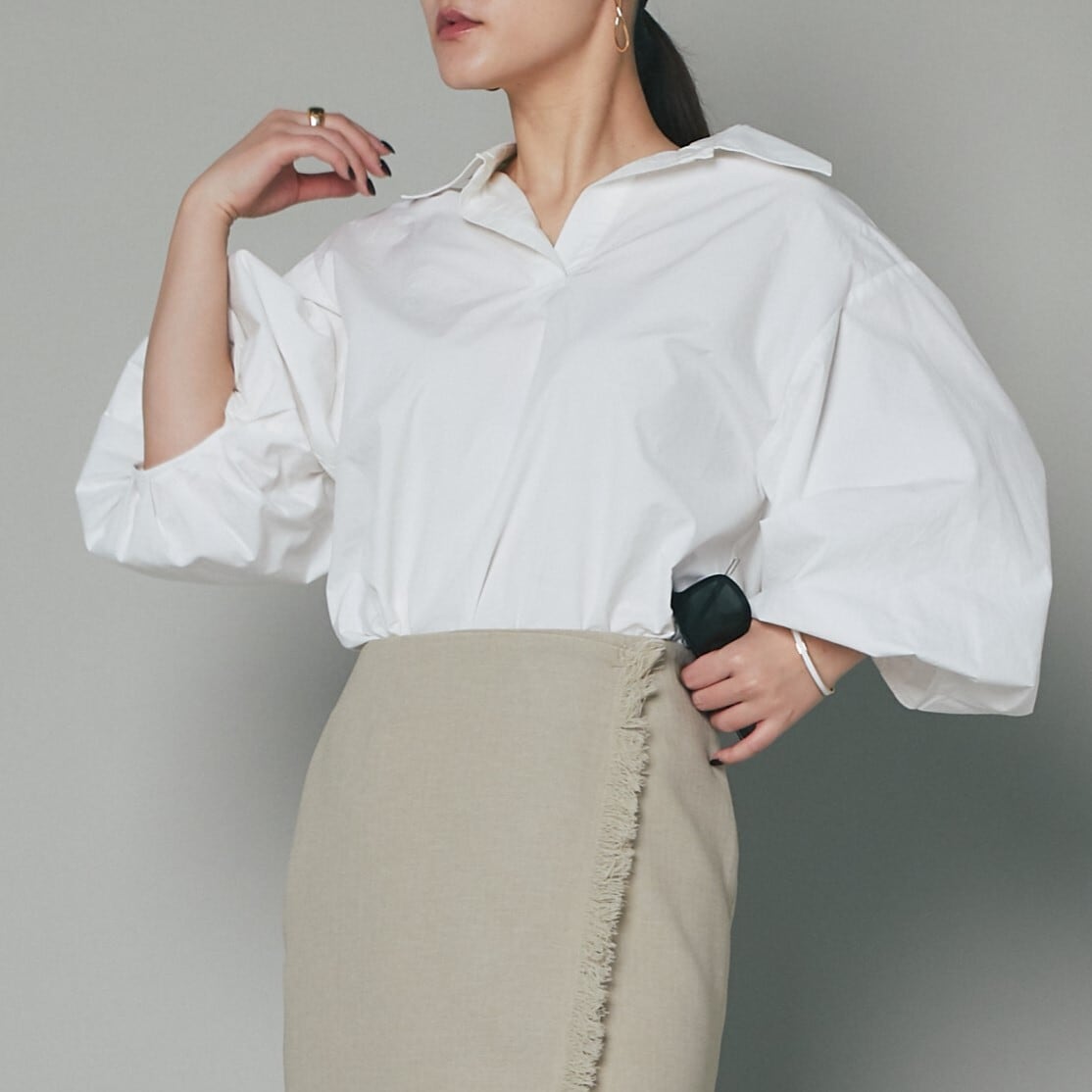絶妙なボリュームの袖口から覗く手首はもちろん華奢に見え、ジュエリーで着飾っても素敵です。またワンサイズですので、多くの方にお召頂けるボトムスを選ばないシャツとなります。